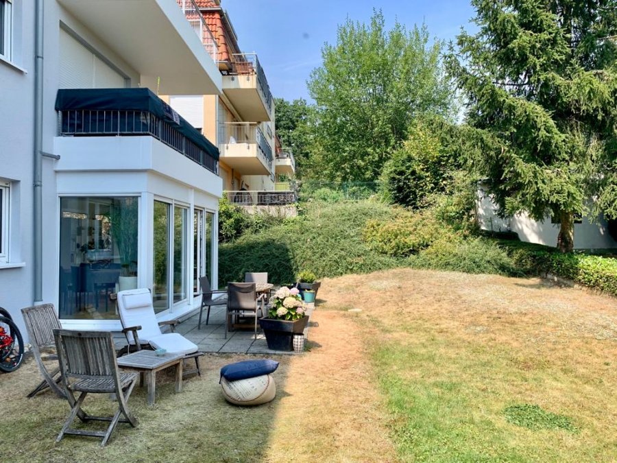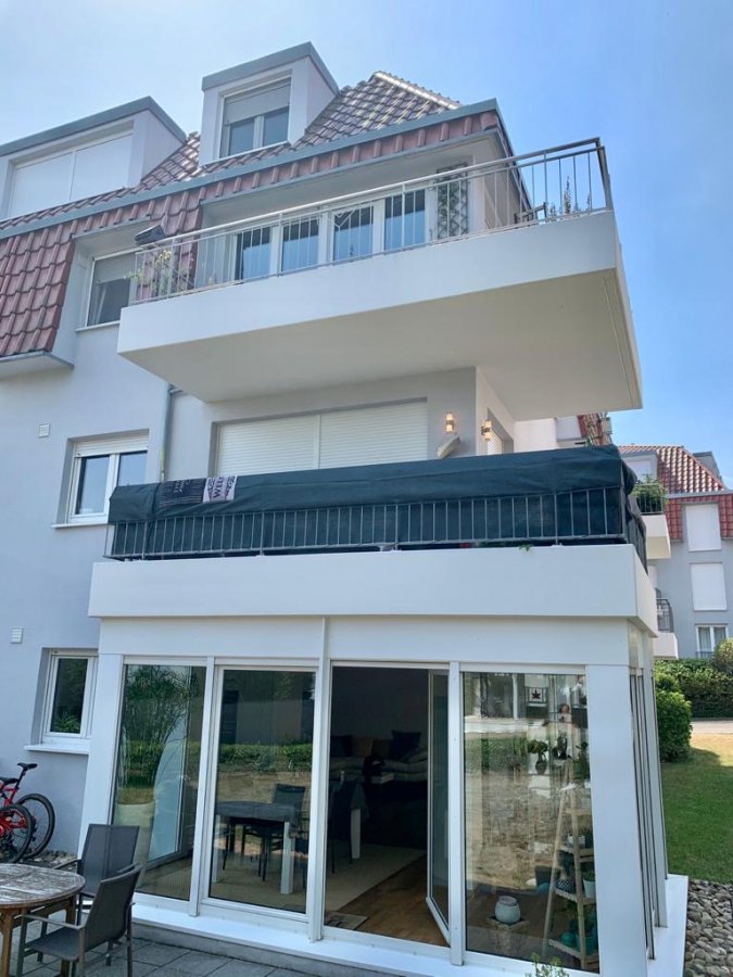 Appartement lumineux, spacieux et situé au calme au rez-de-chaussée avec terrasse et jardin privé.
