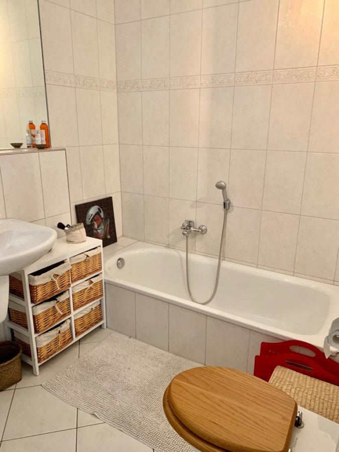 L'appartement se trouve dans une résidence moderne au rez-de-chaussée. Vous y trouverez un grand salon/salle à manger avec accès à la terrasse et au jardin privé, une cuisine ouverte moderne, 2 chambres, une salle de bain avec baignoire, un toilette pour invités et un débarras pratique avec machine à laver. Au sous-sol, il y a une place de parking pour une voiture et une cave privée. Les fenêtres sont à double vitrage et l'appartement est en bon état. Les animaux et fumer ne sont pas autorisés. Les conditions sont un CDI et un revenu net d'au moins 7 000 euros.