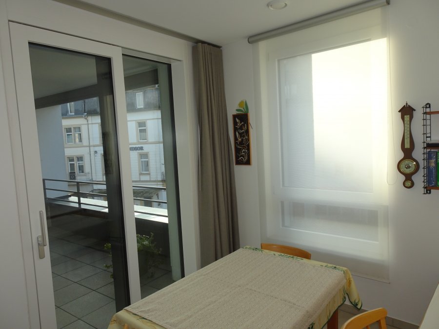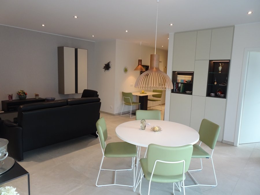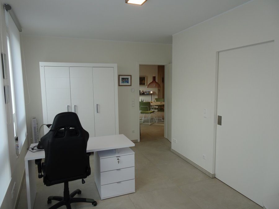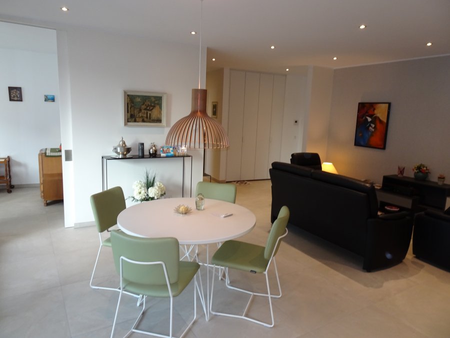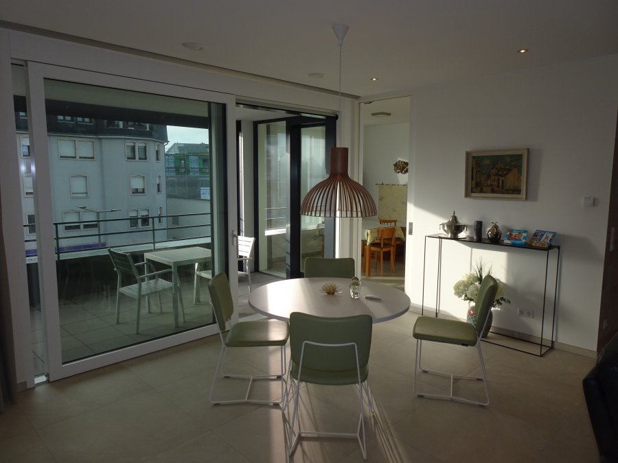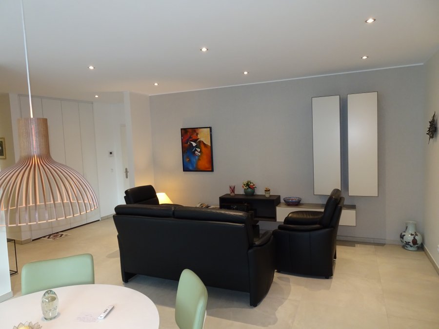 Appartement spacieux et lumineux au cœur de Mondorf-les-Bains.L'appartement est situé au 2ème étage d'une résidence moderne datant de 2018. On y trouve un grand salon/salle à manger avec accès au balcon (côté sud), une cuisine ouverte moderne, 2 chambres, 1 salle de bains avec douche, une salle de bains avec baignoire et douche, un WC invité, un bureau/chambre avec accès au balcon et un grand débarras avec connexion pour lave-linge et évier. Le balcon est équipé d'un grand auvent de soleil qui couvre entièrement l'espace. De là, on a une vue magnifique sur le centre de Mondorf-les-Bains. L'appartement se présente en excellent état et a été joliment aménagé dans un style moderne. Le chauffage au sol, le triple vitrage, les stores roulants électriques et de nombreux placards sur mesure complètent l'équipement haut de gamme. Au sous-sol, il y a une grande cave (14m²) et 2 places de parking. Dans la cour intérieure se trouve un jardin commun utilisable par les résidents.