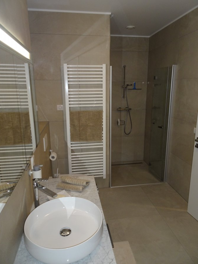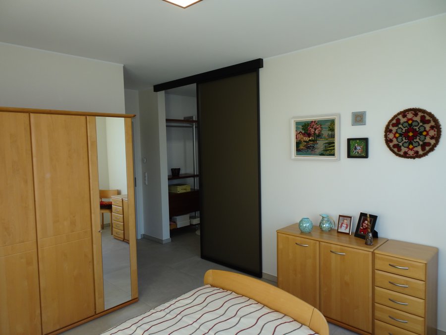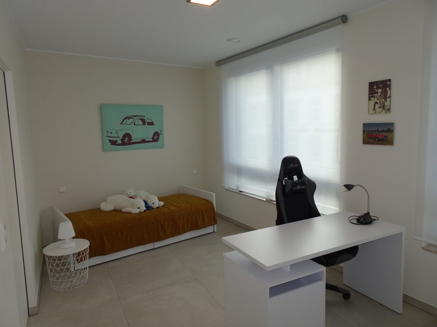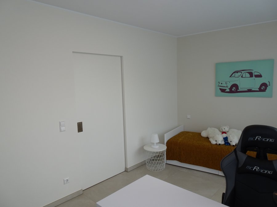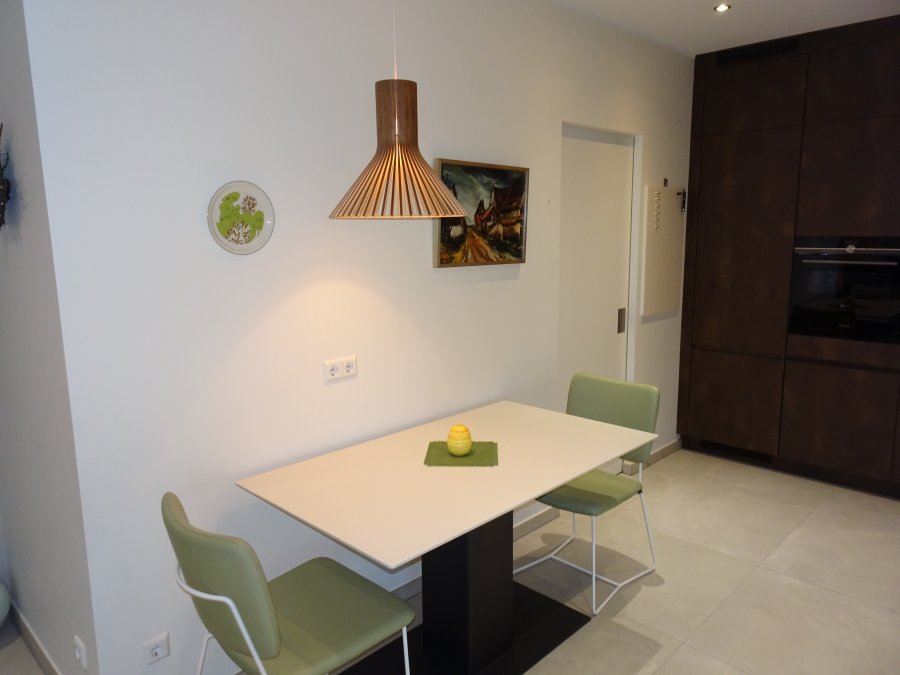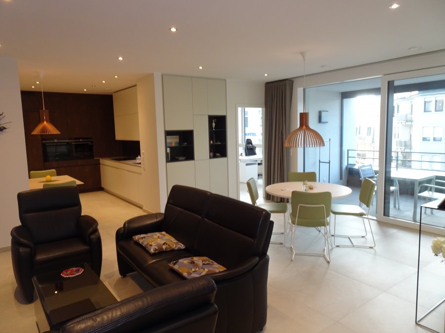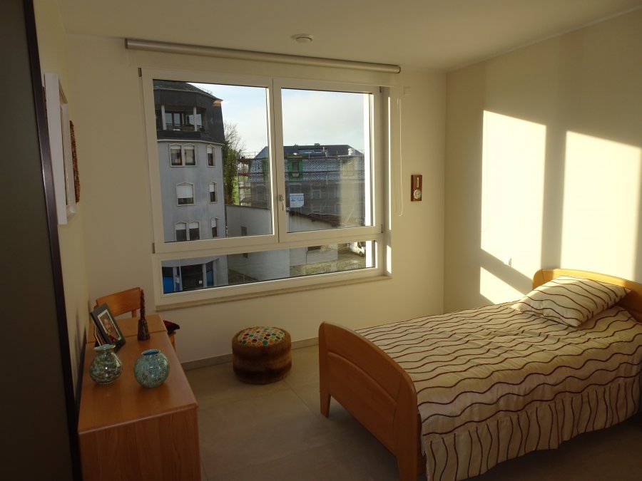 Appartement spacieux et lumineux au cœur de Mondorf-les-Bains.L'appartement est situé au 2ème étage d'une résidence moderne datant de 2018. On y trouve un grand salon/salle à manger avec accès au balcon (côté sud), une cuisine ouverte moderne, 2 chambres, 1 salle de bains avec douche, une salle de bains avec baignoire et douche, un WC invité, un bureau/chambre avec accès au balcon et un grand débarras avec connexion pour lave-linge et évier. Le balcon est équipé d'un grand auvent de soleil qui couvre entièrement l'espace. De là, on a une vue magnifique sur le centre de Mondorf-les-Bains. L'appartement se présente en excellent état et a été joliment aménagé dans un style moderne. Le chauffage au sol, le triple vitrage, les stores roulants électriques et de nombreux placards sur mesure complètent l'équipement haut de gamme. Au sous-sol, il y a une grande cave (14m²) et 2 places de parking. Dans la cour intérieure se trouve un jardin commun utilisable par les résidents.